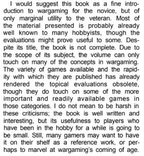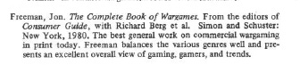 I should note something that will delight anyone who has already bought the other books on this list. In the bibliography, Jackson and Schuessler describe Jon Freeman’s Complete Book of Wargames as the best general work on commercial wargaming then in print.