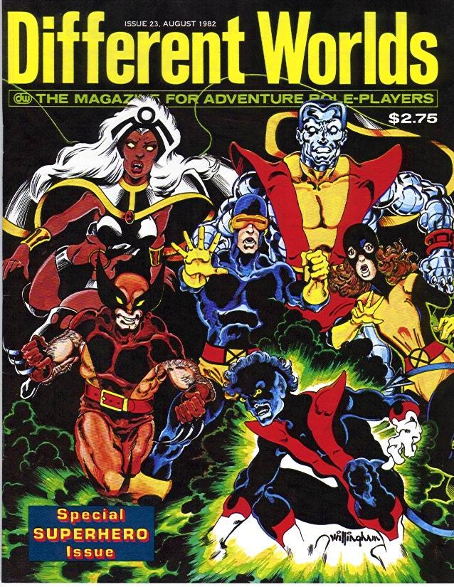 While I had never actually seen a copy of Supergame prior to 2000, I was aware of the game as a kind of mythic artifact because I’d read the article about it in Different Worlds Magazine #23. That particular magazine issue is one of the most important ever published in the role playing game hobby when it comes to super hero games.