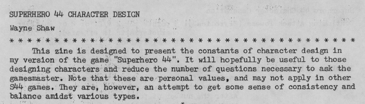 Since Wayne Shaw’s expanded Superhero 44 Character Design rules were printed in Lords of Chaos #8 in 1979, it seems likely that those and Superhero 44 itself, influenced the character creation rules of Supergame. The overlap in some of the combat mechanics of Supergame and Superhero 2044, make me think that the connection between the two games is even greater than just character creation.