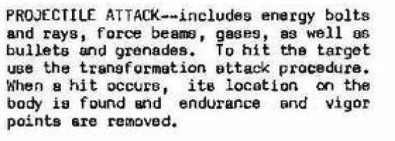 Take for example the ranged combat system. Superhero 2044 has a very unique ranged combat system, one that I’ve only seen in one other published game. Under the rules for Projectile Attacks in Superhero 2044, it states the following: