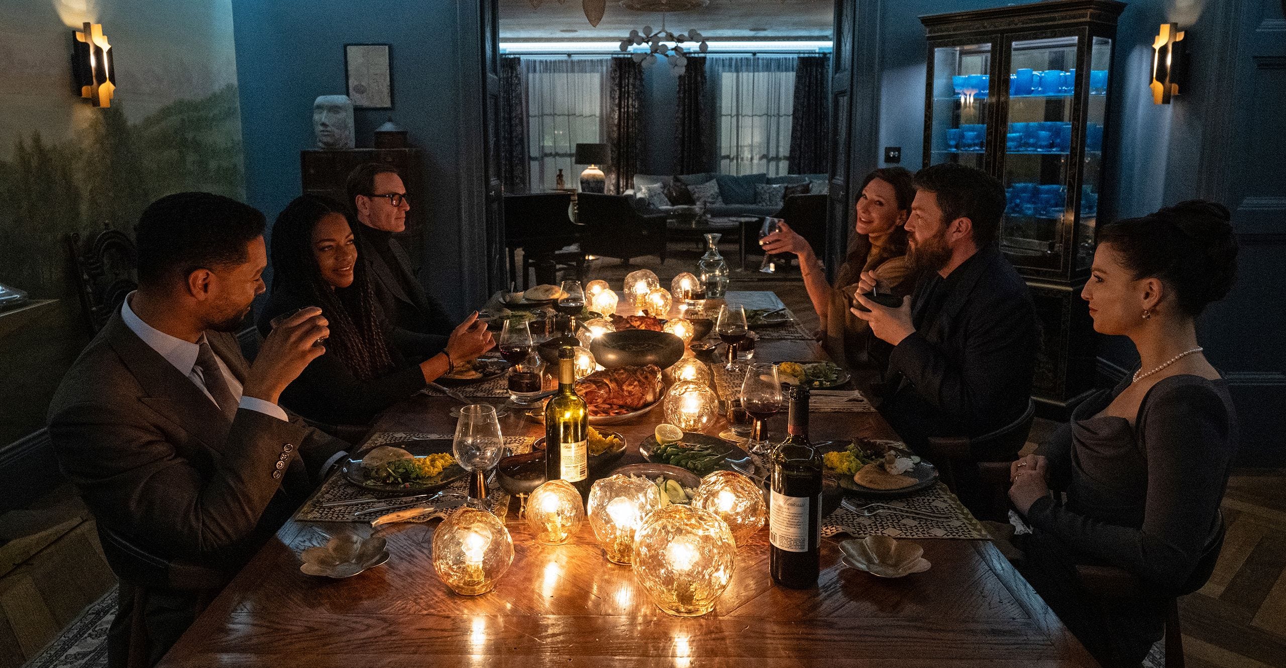 The film plays out as a series of investigations, deceptions, and reveals bookended between two dinner parties thrown by George and Kathryn. The first dinner party sets the stage and incites responses from all the other participants, while the second provides the setting for the denouement. It’s a tightly written screenplay that is extremely well acted by all parties. I’ve been a fan of Regé-Jean Page for quite some time, though my fandom did grow five times larger after his performance in the Dungeons & Dragons film, and his performance here should get him some additional consideration for future spy roles.