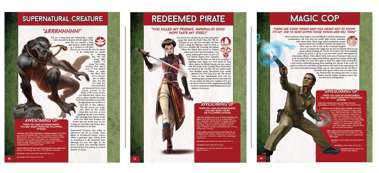 Most importantly, the game has a system for determining who controls various sites of power in order to exert influence over a particular era in time. This system allows, and encourages, play in several time periods and has mechanics that match K-Pop Demon Hunters’s Honmoon magical barrier. In the case of K-Pop Demon Hunters, the Honmoon closes off the overworld from the demons of the underworld and in Feng Shui control of Chi sites attunes the world to the desires of those who control the sites allowing them to block out invaders from the Netherworld or other time periods. The variety of classes and abilities would allow players to create their own band members and fight against demon hordes seeking to feed on the souls of mankind. Are Hunters Magic Cops? Martial Artists? Masked Avengers? Ninja? Redeemed Pirates? That’s up to you.