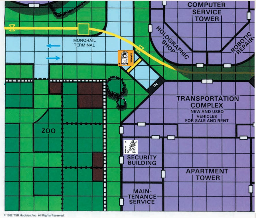 In the Basic version of the Star Frontiers rules, player characters are proficient in using the weapons they are equipped with but lack any other skills and any skill checks that the Game Master might want to make would be percentile checks against attributes. They would have to make that a house rule though, since there are no skill checks in the Basic adventures provided because the Basic version of the game was primarily meant to be an easy point of entry that was essentially pick up and play. The Player Characters work for the Pan Galactic Corporation as security and they get into a fight with a Sathar agent (not an actual Sathar, but a human serving them). It’s an all combat mission that is very scripted. In fact, the Game Master is called “The Reader” at this stage of the game and there is definitely some use of educational pedagogy going on in the presentation.