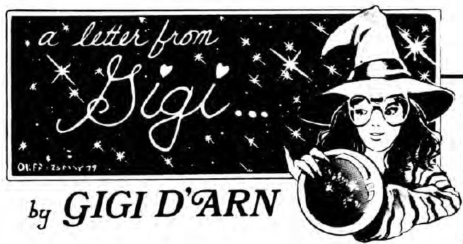 I mailed Gigi -- must have been an address to contact her at -- a number of reports and sometimes copies of documents (for verification) and suitably juicy stories during the time I worked at TSR Hobbies (1980-81) and Metagaming (1981-82). Most of them ended up in her column, sometimes attributed to me as the source, sometimes not. I fell out of the habit when I left Coleco and the game industry after 1983 and I no longer seem to have any copies of DW magazine but I remember Gigi’s column fondly and I *hope* she is a real person. I thought she was cute as a bug, judging from her cartoon image! Sic transit gloria mundi.