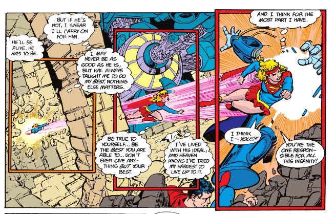 This comes with pain and Tom King explores that issue in his comic run. It’s a run that I’m not as high on as many others, but it is one that I understand and one that grapples with a topic worthy of engaging with. Regardless of the moody/edgy/nihilistic “Whatever” attitude she has at the beginning of the miniseries, by the end she becomes the kind of Kara Zor-El I love the most. She becomes as heroic and dedicated as the one that died in Crisis of the Infinite Earths. That Supergirl gave up everything to save everyone she could, but especially Kal. That’s the Supergirl that I want to see, and the one I expect to see at the end of the film.