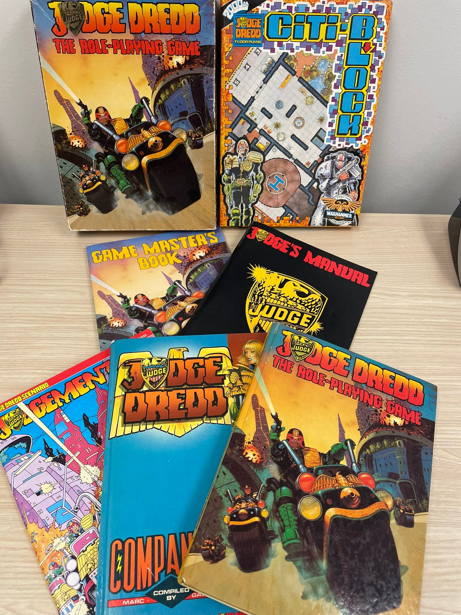 I’ll be writing a full review of this game soon, but I wanted to recommend that you try to find a copy of Games Workshop’s 1985 Judge Dredd Role Playing Game. It’s an interesting attempt to adapt a long standing comic book title to game mechanics. In this case, mechanics that are similar to those of Games Workshop’s Warhammer Fantasy Role Play. That similarity is likely due to the fact that Judge Dredd was Games Workshop’s second in house designed role playing game, but there are some significant differences.