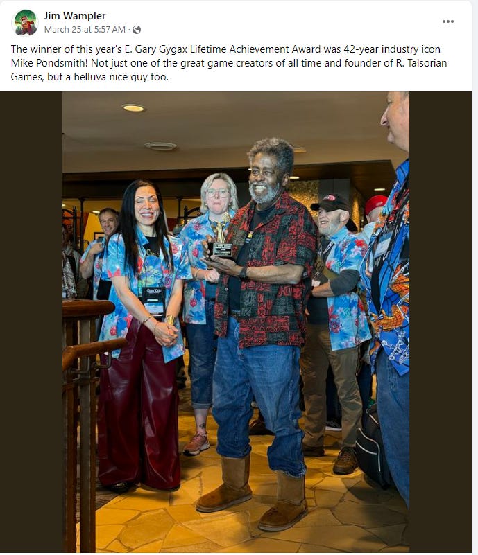 This past week both the Founders & Legends and Gary Con conventions took place in Lake Geneva Wisconsin and at Gary Con gaming legend Mike Pondsmith was awarded the E. Gary Gygax Lifetime Achievement Award. No one, and I mean no one, could be more deserving.