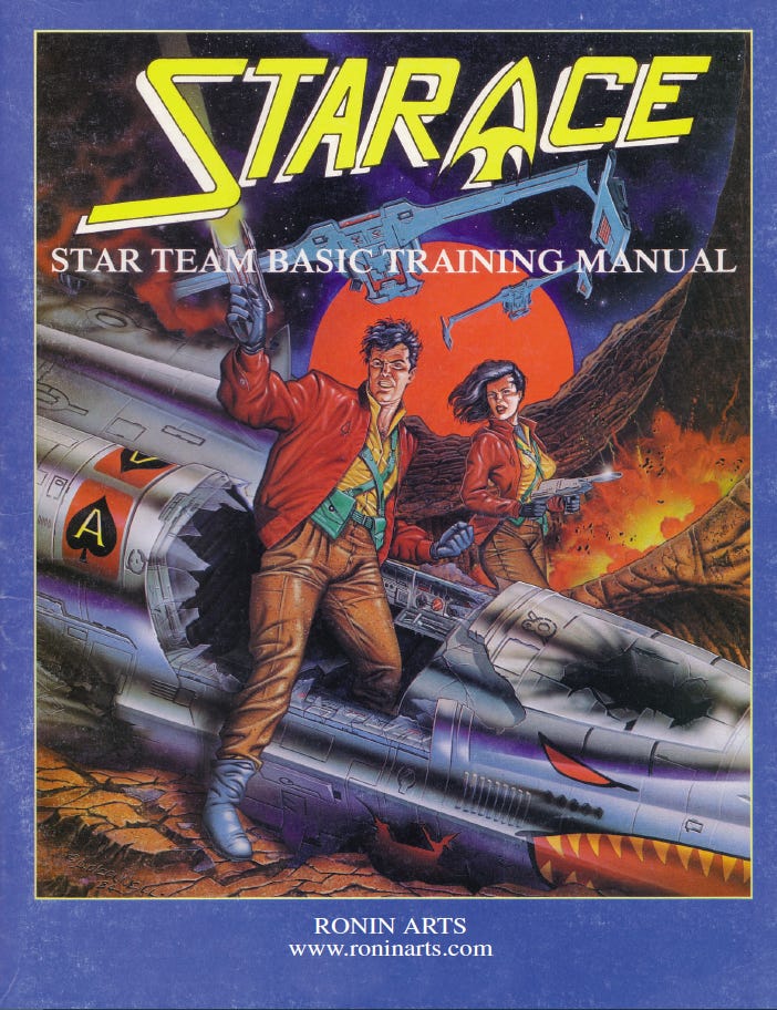 The game is Star Ace from Pacesetter Games and created by Gali Sanchez, Garry Spiegle, and Marc Acres. Towards the end of Gary Gygaxâs run at TSR, the team of employees who became Pacesetter Games left the company and formed their own gaming venture and a very ambitious venture at that. Pacesetter released several boxed sets (Star Ace, Chill, and Timemaster) that all shared a core mechanical foundation that was percentage based and used an action table partially inspired by the action table being used by mid-80s TSR games like Marvel Super Heroes, Conan, Zebulonâs Guide for Star Frontiers, and 3rd Edition Gamma World.