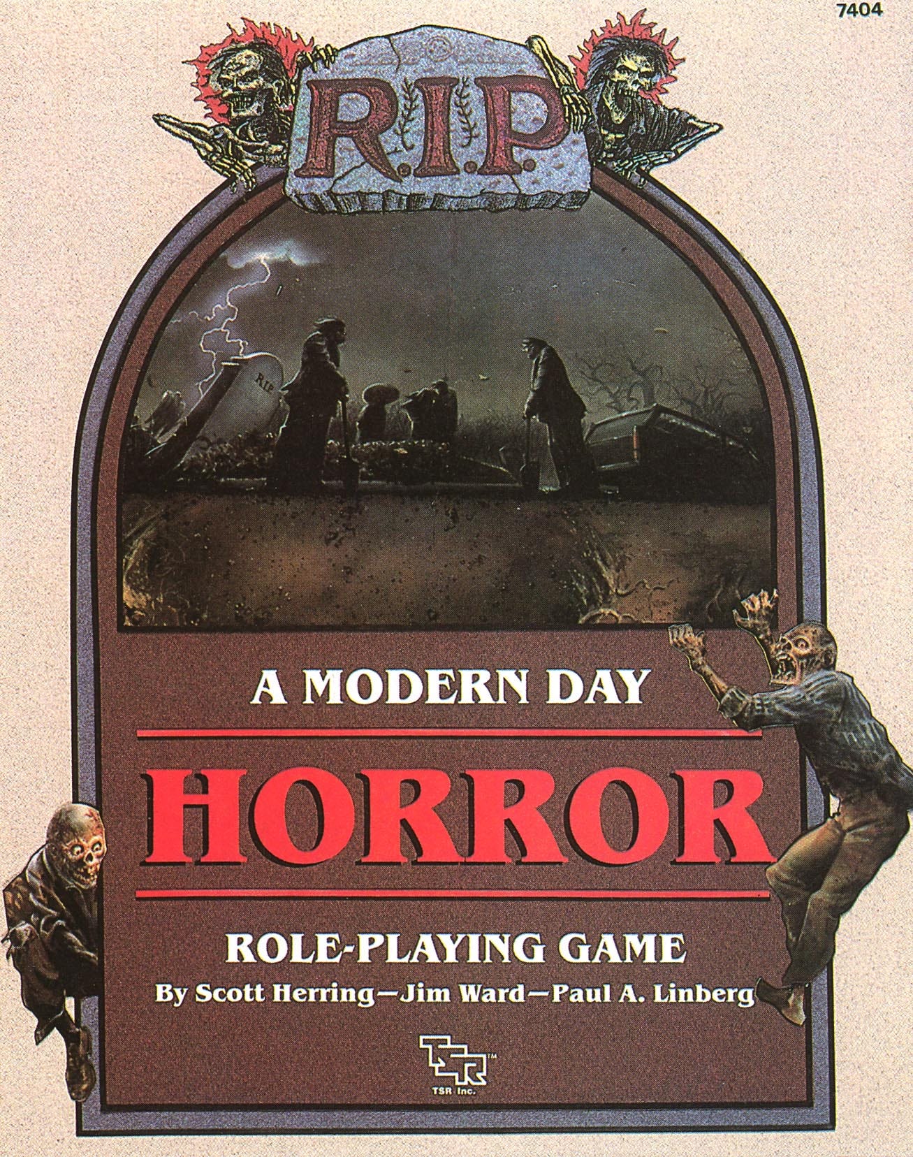 Tim S. Brannan has a wonderful breakdown of a “vaportext” role playing game called R.I.P. that TSR was developing in the final days before the mid-90s collapse over at his The Otherside blog. The horror tabletop gaming genre is similar to the fantasy genre in that it is dominated by a single game, in this case Call of Cthulhu. There are other games in the space, and some excellent ones to be sure, but Call of Cthulhu looms as large as its namesake over the competition. When I was young people mocked a competing game called Chill as being “simplistic” and “for kids.” My own personal tastes have always had me preferring Chill to CoC. That has more to do with my taste in horror than in mechanics. I like horror with hope rather than purely nihilistic horror. There is more to horror than that of the Cosmic variety. Certainly, that genre has cache and value, but for me it’s just part of a larger field.
